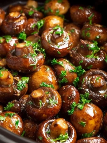 Tender mushrooms smothered in a rich garlic and cheesy embrace, cooked to perfection in a crockpot.