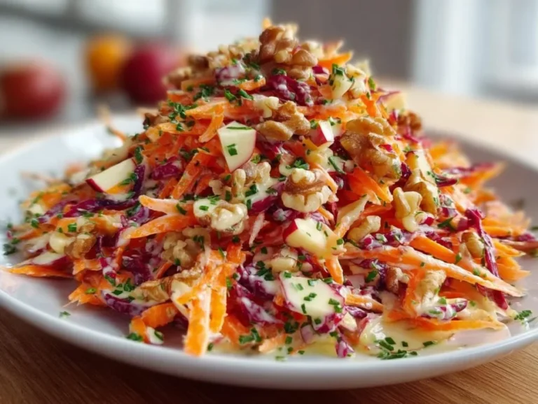 The Crunchy Apple Carrot Salad with Creamy Citrus Dressing is a delightful, refreshing dish that’s perfect for any occasion. Bursting with vibrant colors and textures from crisp apples, crunchy carrots, and the rich, creamy citrus dressing, this salad combines sweetness and tartness in every bite. It’s simple to prepare, making it an ideal choice for picnics, barbecues, or a quick nutritious lunch at home.