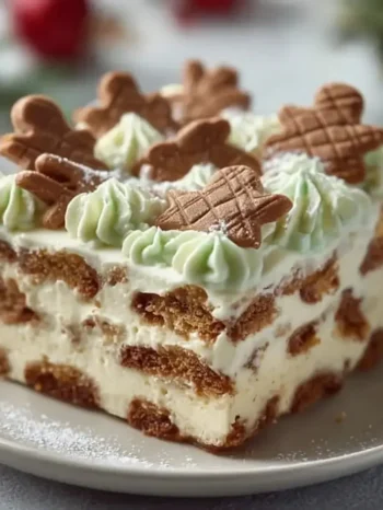 A delightful no-bake dessert layered with creamy goodness and spiced flavors of gingerbread, perfect for the holiday season.
