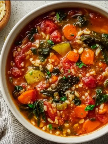 Serve this soup with a crusty piece of whole-grain bread, garlic bread, or a fresh garden salad on the side. It’s also delightful with a sprinkle of fresh herbs like basil or parsley to elevate the flavors further.