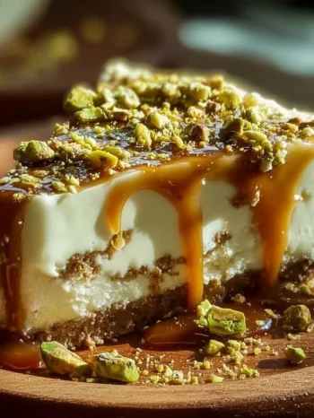 Serve slices of this cheesecake with a dollop of fresh whipped cream and a sprinkle of chopped pistachios for added crunch. Pair it with a cup of coffee or herbal tea for a perfect end to your meal.