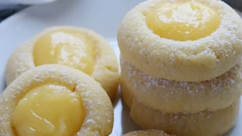 Lemon Curd Cookies are delicious both warm and at room temperature. If served warm, the lemon curd will be slightly melty, adding to the experience. However, cold cookies maintain their shape and that delightful tang from the curd.