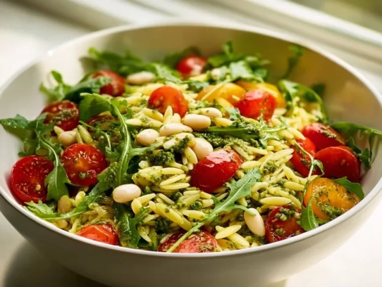 A refreshing blend of orzo pasta, fresh vegetables, and homemade pesto, perfect for picnics and potlucks.