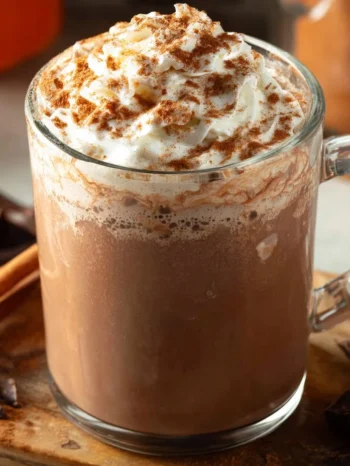 A cozy drink capturing the essence of fall with rich chocolate, pumpkin, and warming spices.