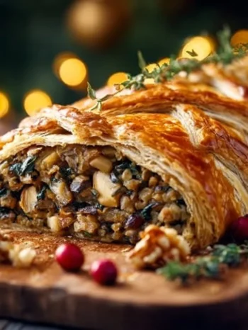 A flavorful twist on a classic dish, this Vegetarian Wellington combines mushrooms, herbs, and golden puff pastry for a sensational and comforting meal perfect for any occasion.
